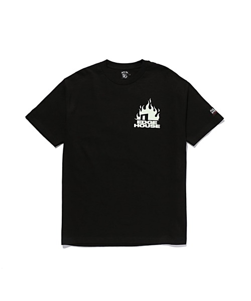 DJ DARUMA&JOMMYがレジデントを務めるTOKYO発のパーティ、"EDGE HOUSE" のFULL-BK によるオフィシャルマーチャンダイズTシャツです。グラフィックはTOKYOを代表するグラフィックデザイナーの1人であるGUCCIMAZEによるデザイン。また、ブラックボディのプリントは蓄光プリントですので、クラブなどのナイトシーンでもおすすめです。