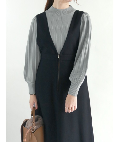上品な印象を与えてくれるスタンドネックのニット。 立体的なプリーツ加工が、縦感を強調してスッキリとしたスマートな着こなしへと導いてくれるのも◎ デイリーからオフィスカジュアルなどの綺麗めスタイルにと、オンオフ問わずに活躍してくれるアイテムです。
