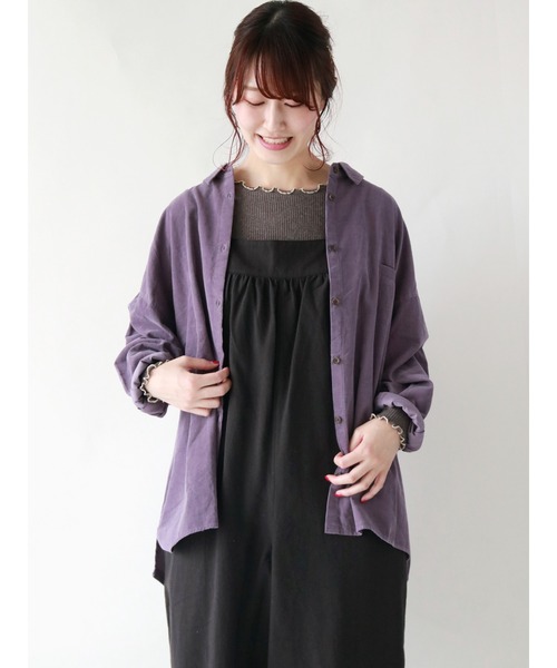 旬なムードをメイクするコーデュロイのゆるシャツ。 バックタックがふんわりとしたシルエットをメイクし、さりげなくフェミニンに。 ふんわりとした袖のフォルムがトレンドの表情をプラスします。 前開きデザインなので、さらっと羽織るのもおしゃれなおすすめアイテムです。
