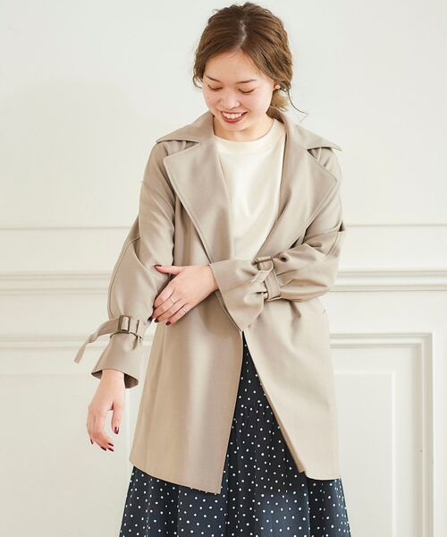 【定番アイテムも丈を変えてアップデート】 春夏に人気だったニュアンストレンチコートが、ショート丈で登場。 ヒップが隠れる丈感が新鮮。 ボトムを選ばず合わせて頂きやすいです。 ボタンレスで抜け感のあるデザインに、 程よい落ち感と表情のあるスラブ素材を使用し、 カッチリせず軽い着心地に仕上げました。 袖口のベルトをしぼって、 袖をキュッとたくし上げた着こなしもオススメです。 お仕事用にはもちろん、 デニムを合わせたカジュアルコーデも かっこよく知的な雰囲気に決まります。 ==================== 透け感:なし 裏地:あり 伸縮性:なし 光沢感:ややあり 生地の厚さ:普通 ====================
