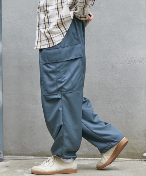 今シーズン間違いないアイテム!素材感で個性を出すカーゴパンツ ・楽な履き心地のイージー仕様 ・耐久力のあるT/Cツイル生地を使用 ・柔らかいスラックスの様な素材感 ・ウエストサイズ感は80cmから100cmまでカバー 【生地・デザイン】 昨今トレンド真っただ中のミリタリーアイテム。中でも定番の6ポケットカーゴパンツをベースに、ワイドシルエットに仕上げたパンツです。生地には耐久性のあるT/Cツイル素材を使用しオリジナルに近い仕様に。ゆったりしたもも周り、膝にかかるくらいのルーズな長さ。ウエストはベルトいらずの楽な履き心地。素材をモード感のあるTCツイルにしたことによりカーゴでありながらモードにも履けるよりトレンド感のあるアイテムとなっております。 【コーディネート】 バギーシルエットのパンツなので、ビッグシルエットのTシャツと合わせれば簡単に旬な着こなしに。ラガーシャツやスポーティなスニーカー、バケットハットなどと組み合わせをお楽しみください。またベーシックなカラー展開なので、ワントーンでコーディネートすればカジュアルな装いだけでなく、ストリート、モードなスタイリングも可能です。 【お買いものをよりお楽しみいただく為に!!】 ▼商品のお気に入り登録(ハートマークをクリック) お気に入りアイテムの完売カラーの再入荷通知や、ラスト1点の通知、セールの通知も受け取ることができます。 ▼ブランドのお気に入り登録 新商品や再入荷など、クーポン配布などのお得な情報を受け取ることができます。