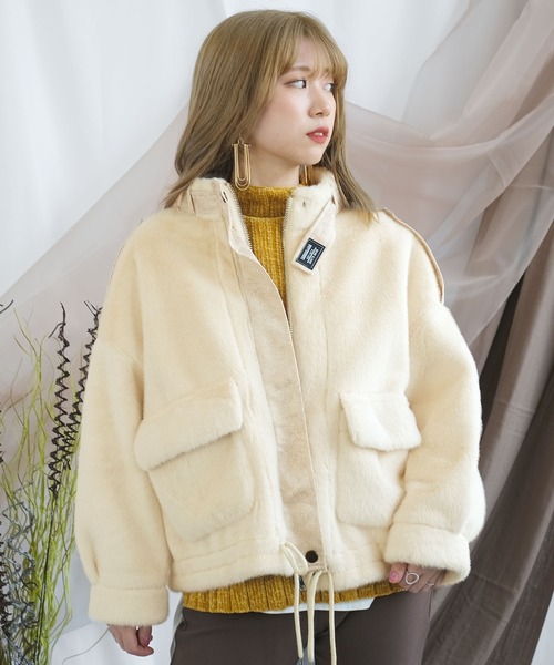 ふわふわのファーが心地良い。 肌触りの良いフェイクファーが特徴的なスタンドカラージャケット。ファスナーとボタンで、羽織りやすさだけでなく防寒もバッチリ。裏側にはフェイクスエード調の生地を使用し、裾のヒモで調節すれば外気を通さず暖かく過ごせます。フロントの大きめポケットで可愛さも溢れる1枚。カジュアルになりすぎず幅広いコーデが楽しめます。 ■商品仕様 フェイクファー・フェイクスエード生地 裏地…なし 伸縮性…なし 透け…なし ポケット…あり 付属品…なし 着脱…前開きボタン・ファスナー ※ボタン・ファスナーの仕様は変更される場合がございます。 【ご購入前に必ずご一読下さい】 ※モニタ環境によって、商品の色合いが多少異なる場合がございます。 ※色落ちの恐れがありますので、他のものと分けてお洗濯して下さい。 ※商品をお安く提供させて頂く為、検品後のアイロン掛けは省略させて頂いています。 発送時も簡易梱包の為、お受け取り時にたたみ皺があると思いますがご了承下さい。