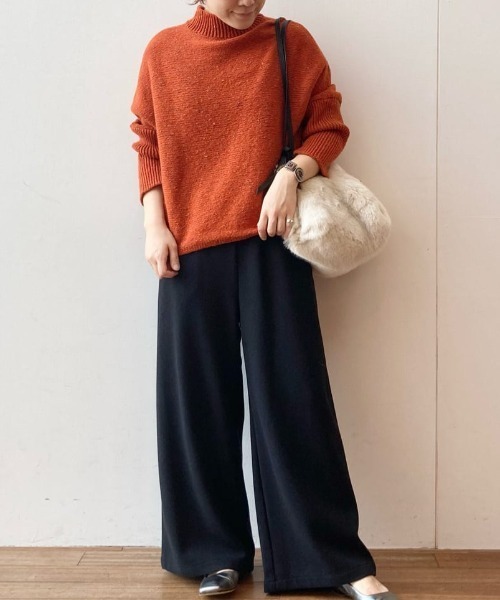 コンパクトなシルエットのニット。 袖はドルマンスリーブになっており、短めのお袖で肩が落ちるデザイン。 深めのグリーンとオレンジ系の二色展開予定です。
