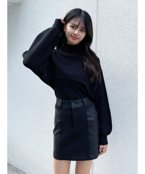 ニットタンクトップの上にハイネックのショートニットトップスをレイヤードしたニットプルオーバー。 別々でも着用出来る着回し万能アイテムです。