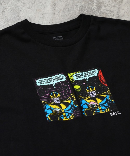 【BAIT MARVEL COLLECTION】 BAITよりMARVEL作品のキャラクターが一堂に会した新作コレクションが登場。 BAITでも過去、様々なアイテムを展開してきたマーベル。出版社としてコミックスで多数の作品を世に排出し、90年代にはマーベル・スタジオが設立。コミックスを原作とした映画・ドラマを制作している。マーベルの作品内では同じ時系列を共有しており、キャラクターたちがクロスオーバーした作品の世界観も人気を博す。近年では人類を守るため、最強ヒーローたちが集結した究極のチームが活躍する映画「アベンジャーズ」が4作に渡り公開されている。 今回、BAITではそんな「アベンジャーズ」に登場するヒーローたちの活躍するシーンが切れ取れられたデザインアパレルが新登場する。 © 2021 MARVEL