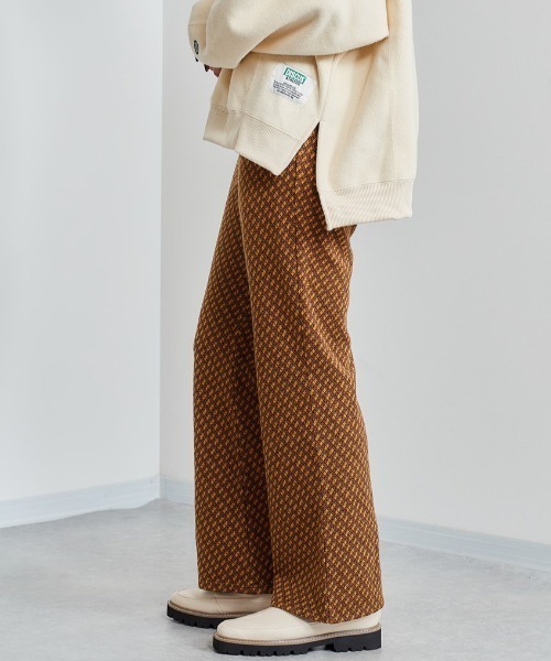 秋冬にぴったりなジャガード柄のパンツ◇Point◇緩やかなフレアデザインが脚のラインを綺麗に見せてくれます。高級感のあるジャガード柄はコーデの主役になること間違いなしです。◇Material◇さらっとした穿き心地でストレスフリーに着用していただけます。ウエストがゴムなのも嬉しいポイントです。◇Coordinate◇シンプルなトップスと合わせてすっきりと着こなすのがおすすめです。足元はブーツを合わせることでより季節感のあるコーデに◎照明や天候により実際の色味と異なって見える場合がございます。ご了承くださいませ。