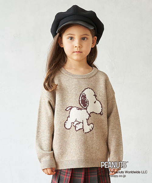 ほっこりムードがただようスヌーピーモチーフのPEANUTSとのコラボニットですワントーンで仕上げた大人っぽい雰囲気がワンランク上のスタイリングに♪ ラフな着用感を与えるドロップシルエットや肌ざわりの良い風合いなど、快適さをサポートする工夫も満載。ご自宅の洗濯機で洗えるウォッシャブル仕様もうれしいポイントです。内側にはお名前を記入できるタグつき。刺しゅうの裏に「あて布」はございません。【透け感】透けない※ベージュ【生地の厚さ】普通【伸縮性】あり【裏地】なし【ポケット】なし