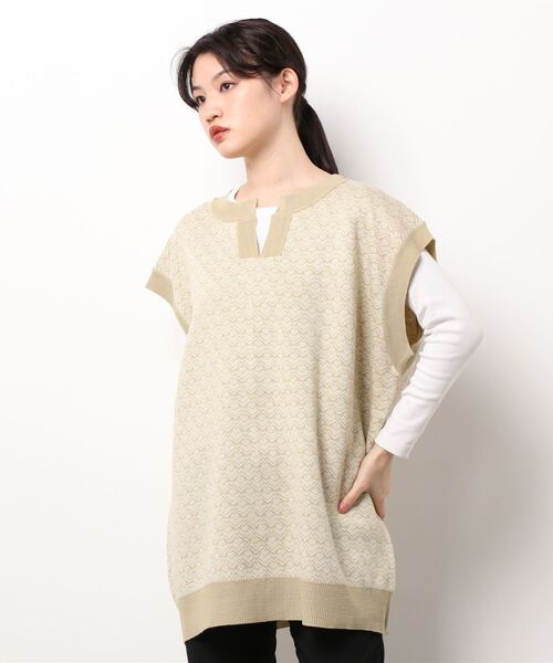 異なるフロントデザインが楽しめる2WAYベスト。秋冬シーズンにマストなふんわりあたたかなニット素材で仕立てました。メリハリのきいたデザインで着こなしを引き締めてくれるのも◎レイヤードコーデが大人っぽくおしゃれにきまる、おすすめのアイテムです。