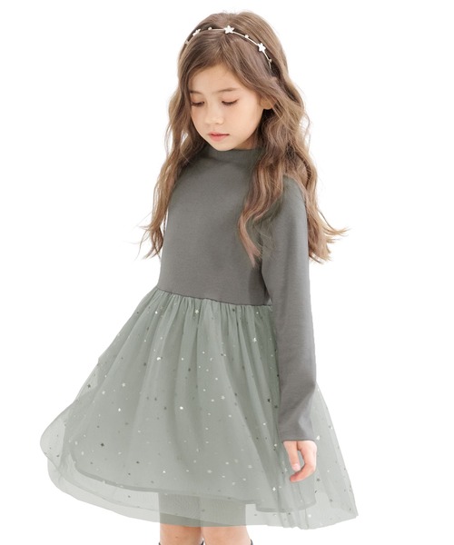 上身頃:ポリエステル60% 綿35% ポリウレタン5%下身頃:ポリエステル100% ふんわりチュールが女の子らしい♪ ハイネックで首まであったかいワンピース★