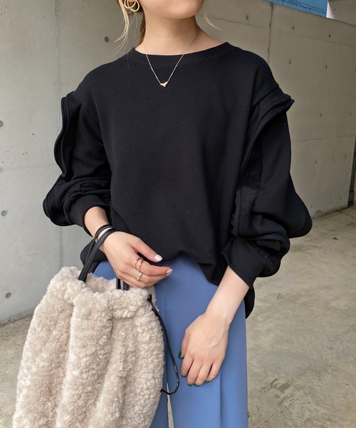 いつものスエットスタイルに変化を加えてくれる1枚 袖のフリルが他にはないデザイン。 いつものカジュアルなスエットスタイルも女性らしく、周りと差の付く1枚です。 ・コンパクトな身頃でどんなボトムスにもマッチ ・スエットスタイルに華やかさをプラス ・スカートに合わせてとことん女性らしく ・スラックスやハーフパンツ合わせの甘さを抑えたスタイリングもおすすめ ********************** 透け感:なし 裏地:なし 伸縮性:なし 光沢感:なし ********************** ▼手洗い可能 ※撮影場所やお使いのモニター環境により若干お色味が異なる場合がございます。 特にロケの撮影では明るく見える傾向にございます。 ※商品はサンプルで撮影をしております。若干の仕様が変更になる場合がございますので予めご了承の上ご注文くださいますようお願いいたします。 ▼商品のお気に入り登録 完売カラーの再入荷通知や、ラスト1点の通知、セールの通知も受け取ることができます。 ▼ブランドのお気に入り登録 新商品や再入荷など、いち早くブランドのお得な情報を受け取ることができます。 #live210921