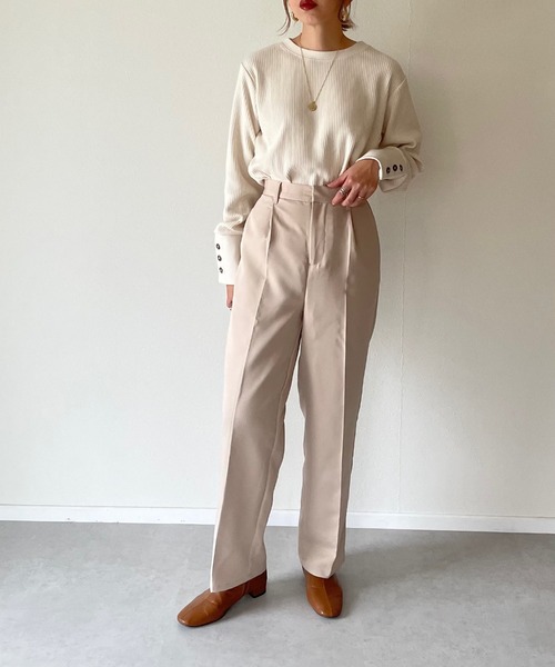 y/m×misato 美脚見えが叶うトラウザーパンツ ■デザイン 程よくゆとりのあるシルエットのトラウザーパンツ。センターラインが脚を綺麗に見せてくれ、美脚見えが叶う一本。 フロントはスッキリとしたデザインでインスタイルも綺麗に決まります。 後ろはゴム使用で楽に履いて頂けます。 ■コーディネート カジュアルなTシャツから綺麗めのブラウスまで幅広いコーディネートでお使い頂けます。 【y/m×misato】 misato36 気を張らず着られる素材感や、ナチュラルな雰囲気に合う色味のカラーバリエーション。 デザインにもこだわりつつ、日常に溶け込みやすいアイテムをお届けします。 【お買い物をよりお楽しみいただく為に】 ▼商品のお気に入り登録 お気に入りアイテムの値下げ・再入荷・ラスト1点などの通知を受け取ることができます。 ▼ブランドのお気に入り登録 新商品や再入荷、セール、クーポン配布などいち早くお得な情報を受け取ることができます。 ※撮影商品はサンプルの為、実際の仕様と異なる場合がございます。 ※画像の商品は光の照射や角度、お使いのモニター環境により、実物と色味が異なる場合がございます。 品番:525EAG31-1620 品名:エステルツイルトラウザーパンツ