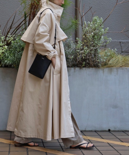 《スタイリング》 襟のボタンを全て閉めるとスタンドネックになり、2通りの襟の着こなしを楽しめます。 全体的にこなれ感のあるルーズなシルエットになっているため、厚手のニットなども着膨れせずさらっと羽織れます。 肌寒い時期にはニットやスエットと合わせたり、春先はブラウスやワンピースに羽織るなど長いシーズン着回すことができます。 《ディティール&生地感》 2通りの襟の着方を楽しめます。 その日のコーディーネートによって着方を変えられる優れものアウター◎ 高級感とハリのある綿100%素材を使用しております。 内側からウエストをドロストできる仕様になっており、お好きなシルエットに絞り調節することが可能です。