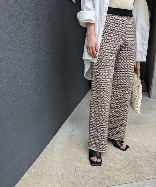 y/m×misato【セットアップ対応アイテム】リラックスした穿き心地が魅力のジャガードパンツ■デザイン程よく厚みのあるストレートのニットパンツ。 ウエストゴムの仕様でリラックス感あるデザインです。表情あるジオメトリック柄がコーディネートのアクセント使いにもぴったりです。■コーディネート同素材の深Vネックバックボタンベストとのセットアップコーデがおすすめです■セットアップ対象アイテム深Vネックバックボタンベスト(525EAG70-0240)【y/m×misato】misato36気を張らず着られる素材感や、ナチュラルな雰囲気に合う色味のカラーバリエーション。 デザインにもこだわりつつ、日常に溶け込みやすいアイテムをお届けします。【お買い物をよりお楽しみいただく為に】▼商品のお気に入り登録お気に入りアイテムの値下げ・再入荷・ラスト1点などの通知を受け取ることができます。▼ブランドのお気に入り登録新商品や再入荷、セール、クーポン配布などいち早くお得な情報を受け取ることができます。※撮影商品はサンプルの為、実際の仕様と異なる場合がございます。※画像の商品は光の照射や角度、お使いのモニター環境により、実物と色味が異なる場合がございます。品番:525EAG71-0250品名:ジオメトリックパターンジャガードパンツ