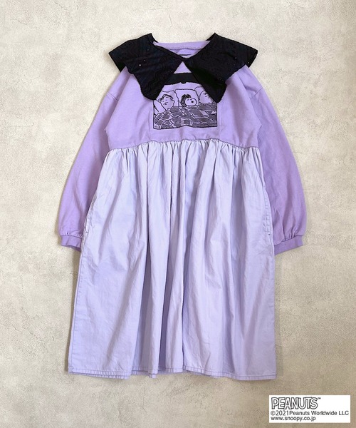 【BIG FIELD】 ☆フロントのスヌーピーのプリント☆取り外し可能なつけ衿でガーリーにもカジュアルにもOKな切替ワンピース☆ フロントのスヌーピーのプリント・大きなつけ衿がコーディネートのポイントにピッタリ♪♪ 後身頃につけ衿を固定できるボタンが付いているので、グルグルとつけ衿が動いてしまうのを防いでくれます!! 胸元部分で切替になっていて、スカート部分はふんわりフレアなシルエット♪♪ なんとつけ衿は、取り外し可能♪ つけ衿を外すと、カジュアルワンピースに大変身♪♪ つけ衿はお手持ちのお洋服とコーディネートも◎ 着回し力バツグンのワンピースです☆☆ ☆☆カラーは2色展開☆☆ ●チャコール● モノトーンコーディネートにピッタリのチャコール! フロントには、おなじみのフライング・エースのプリント☆ ●パープル● ヴィンテージカジュアルにオススメのパープル♪ フロントにはスヌーピーとチャーリー・ブラウンとライナス・ヴァン・ペルトがぐっすり眠っているプリント☆ ◆左右ポケット付き◆