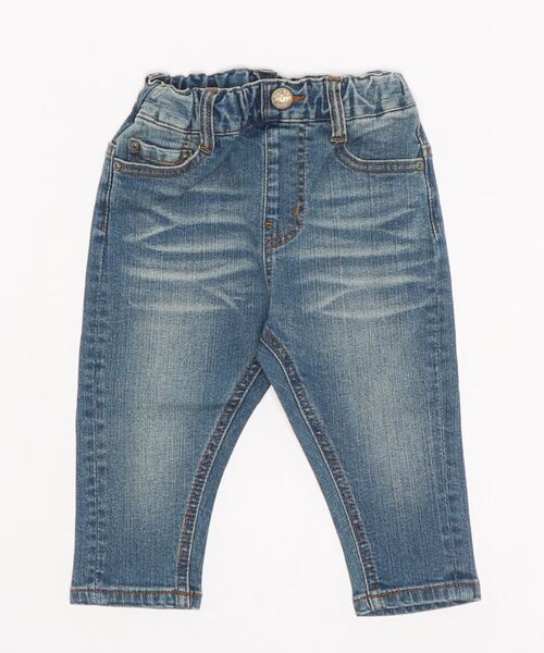 ベーシックで合わせやすい5ポケットデザインのデニムパンツ。ストレッチデニムを使用。 腰まわりはゆったりと、裾にかけてテーパードしたきれいなシルエットが特徴。 後左ポケットの刺繍モチーフがポイント。 くるぶし丈。