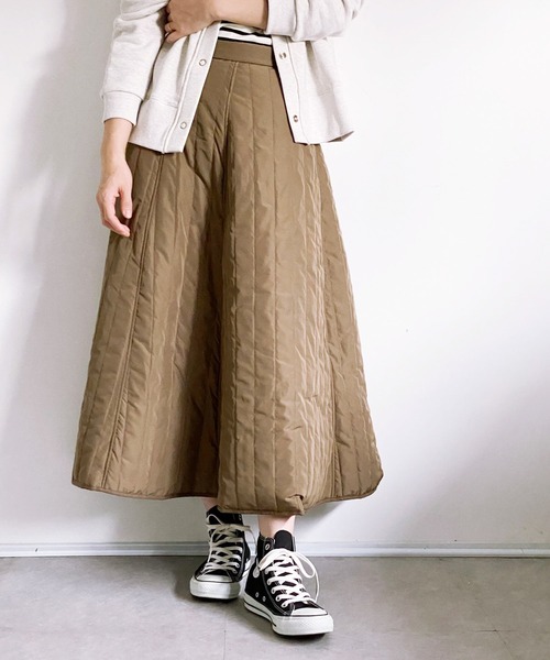 今年注目のキルト素材のフレアースカート。 中綿を使用し、軽さと暖かさを兼ね備えた実用性もある一枚! 立体感のあるキルティング素材+ハリとボリュームのあるフレアシルエットで 広がりすぎず綺麗なAラインのシルエットで大人っぽく着ていただけます。 360度どこから見ても美しいシルエットをキープ。 足元はトレンドのブーツ合わせで女性らしい着こなしもおすすめです。 カジュアルにもキレイめにも合わせやすい万能アイテム。 バックウエストがゴム仕様なのでウエスト周りのスッキリ見えを叶えつつ、 ストレスフリーな穿き心地も嬉しいポイントです。 【生地】厚みのあるキルティング生地 【伸縮性】ウエスト後ろ部分にあり 【透け感】なし 【裏地】なし ≪INFORMATION ≫ ▾商品のお気に入り登録▾ お気に入り登録した商品は、セールの通知、ラスト1点の通知、完売カラーの再入荷通知、クーポン発行やタイムセールの通知も受け取ることができます。 ▾ショップ・ブランドのお気に入り登録▾ 新商品の発売や再入荷、タイムセールの通知など、ottilie取扱いブランドのお得な情報をいち早く受け取ることができます。