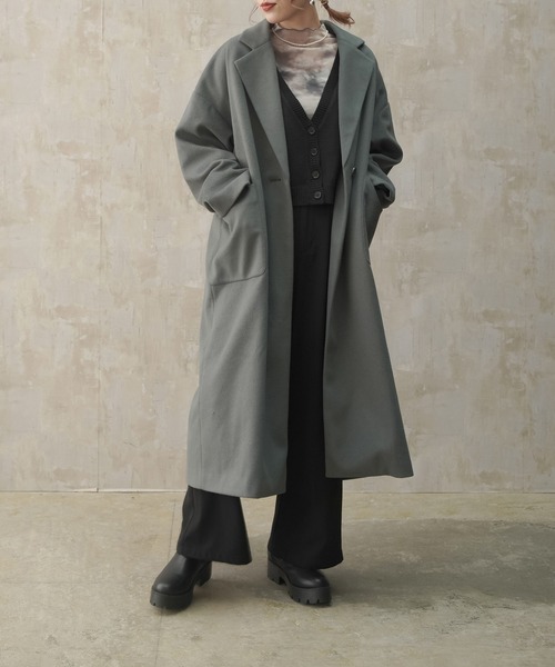 【着回し力抜群!長く使えるオーバーコート】 ▼おすすめポイント 1.バックスリット入りのロング丈で、動きやすく防寒も可能! さらっと羽織れるオーバーサイズで、中に合わせるトップスを選びません。 2.柔らかく肌触りの良い、ウールライクな素材が高見え◎ お財布もスマホも入る大きめのパッチポケットは、ちょっとお出掛けするのにも便利です。 3.深めテーラード衿なので、顔周りがすっきり見える♪ シンプルなデザインなので、インに合わせるアイテム次第で色々なコーデが出来ます。 ▼おすすめのStyling 1.カレッジロゴのインナーにセミフレアパンツを合わせる、ヴィンテージカジュアルコーデ 2.ストライプシャツとニットベストを合わせれば、クラシカルカジュアルコーデに 3.Vネックケーブルニットとリブパンツの合わせに羽織った、リラックススタイル ※スタイリングは、詳細画像のコーディネートでご覧ください ▼担当からひと言 1.定番の形なので、カジュアルなコーデにもフェミニンなコーデにも合わせられます! 2.着ていて重すぎない、ずっと触っていたくなる気持ち良い生地です♪ ------------------------------ 透け感:無し 厚さ:厚手 伸縮性:無し 洗濯方法:ドライクリーニング可能 ------------------------------ ※詳しいお手入れ方法は、商品タグをご確認ください。 ※素材の性質上、ピリング(毛玉)の発生しやすい製品ですのでご了承ください。 ▼お悩みの方に ------------------------------ 〇アイテムのお気に入り登録 気になっているアイテムの色、サイズの♡をクリックして、ラスト1点を通知でお知らせします 欲しかったアイテムの♡をクリックすると再入荷の通知でお知らせします。 ------------------------------ 〇ショップのお気に入り登録 ショップページの♡をクリックすると、新商品、人気アイテムの再入荷など、お得な情報を受け取ることができます。 ------------------------------ ▼注意点 ※掲載画像(商品、モデル着用とも)につきまして、撮影環境やお客様の閲覧されますパソコンや携帯電話キャリアによって、実際の商品とは多少異なった色に見える場合があります。 また表示のサイズ感も実物とは若干異なる場合もございますので、予めご了承ください。 ※タグ・バーコードのついたシールには、サイトのご案内と異なるカラー名が記載されていることもございます。ご了承ください。