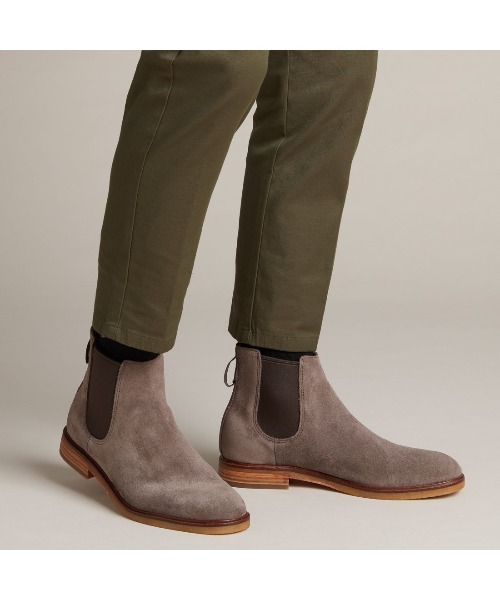 クラークスのアイコニックアイテム「デザートブーツ」にインスパイアされた、チェルシースタイルブーツ。デザートブーツ由来のスマートなシルエットで、足元のもたつきもなくきれいな着こなしをかなえます。 グレージュのカラーリングはどんな色とも合わせやすいニュートラルカラー。 定番サイドゴアブーツ きれいなカラーを選んで人とは違う着こなしを楽しんで。 レザーの中敷きで快適な履きごこち。 ※シューズボックスおよび本体に表記されているサイズはUKサイズになります。 「CN」は中国サイズの表記で「cm(センチメートル)」ではございません。