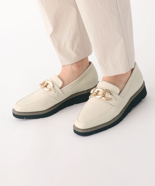 【デザイン】ボリュームのあるメタルチェーンをトラディショナルなローファーにデザインしました。ソールは厚みがありますがEVA素材なので軽く感じます。靴下あわせでカジュアルにも綺麗めのスタイリングにもどちらにも合わせられます。店舗へのお問い合わせ商品番号:C12-03202●製品寸法:02(23.5~24.0cm):対応サイズ23.5~24.0cm ヒール高3cm 幅9cm プラットフォーム1.5cm03(24.0~24.5cm):対応サイズ24.0~24.5cm ヒール高3cm 幅9cm プラットフォーム1.5cm備考:重量:03(24.0~24.5cm)片足約275g