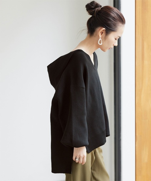 こだわりを感じる素材感と編地がポイントのニットパーカー。 ・パーカーでもニット素材なのでカジュアル過ぎず、やわらかな印象を与えてくれます。 ・ゆったりとしたサイズ感で体型カバーができるのも嬉しいポイント。 ・深めのVネックで1枚はもちろんインナー遊びも楽しめます。 ・サイドスリットで抜け感を演出しアクセントをプラス。 ※当商品は機械による生産の過程上、どうしても"生地を織る際の糸の継ぎ目"や多少の"ほつれ"、他繊維の"混紡"、また、形やサイズや柄に多少の"誤差"が生じる場合がございます。 ※サイズは、実寸サイズを測っているため多少誤差がでる場合があります。製造工程の関係上、各採寸箇所実寸(平置き)より【約-3cm~+3cm】程度は誤差の許容範囲とさせて頂いておりますので、予めご了承くださいませ。 ※メーカーより密封状態で入庫し、検品時に再度袋詰めを行っておりますが、素材により染料等の臭いが強い場合がございます。 ※発送上の状態によって商品がシワになる場合がございます。 ※商品により色落ち・色移りがある場合がございますので、品質表示をご確認の上、お取り扱いにご注意くださいませ。 【生地】やや厚みのあるニット生地 【伸縮性】あり 【透け感】なし 【裏地】なし