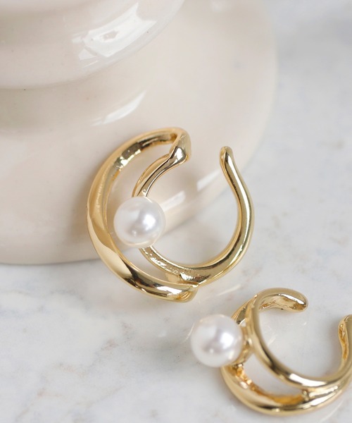 立体感のあるメタルにパールを添え、ニュアンス感のある耳元を演出するイヤーカフ。顔周りのアクセントになるデザインが、こなれた大人らしい印象に導いてくれます。華奢なピアスやイヤーカフとの重ね付けが相性が良くてオススメですよ♪※ATTENTION※■製造・輸送時についた微細なキズや、ゆがみ、黒点、塗装ムラ、パールの塗装剥げ、接着剤のはみ出しが見られる場合がございます。■モチーフの形状、開口部分の幅には個体差がございます。上記は不良の対象外となりますので、予めご了承くださいませ。