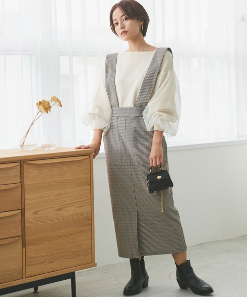 【2021AW】 伸縮性抜群で着心地ラクチンなチェック柄サスペンダー付きスカート。 スカートはタイトなラインですが、スーパーストレッチ素材&フロントのスリット効果でアクティブな動きにも気持ちよく馴染みます。 ウエストは総ゴム仕様、やや幅広なストラップは取り外しも可能なのでもちろんスカート単品としても着用OK。 3色それぞれ異なるチェック柄で雰囲気の違いを楽しんでいただけます。 *豊富なマルチサイズ展開(M/L/LL/3L/4L) *大きいサイズ対応 <INCEDE> ■商品注意事項■ ※商品画像は、光の当たり具合やパソコンなどの閲覧環境により、実際の色味と異なって見える場合がございます。予めご了承ください。 ※末永く愛用頂く為に、アテンションタグ・洗濯ネームを必ずご確認の上、着用又はお取り扱い下さい。