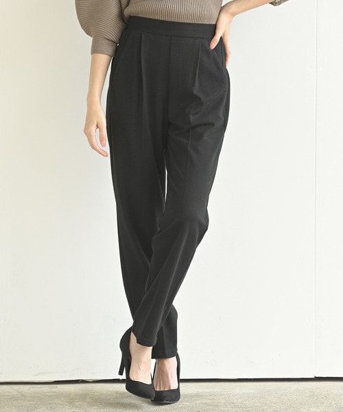 ふんわり起毛のきれいめテーパードパンツリラクシーにはけるストレッチの効いたテーパードパンツ。ウエストのツータックにほどよいゆとりのあるシルエットが女性らしい1枚です。ふわっと優しい肌触りの起毛素材でシーズンライクなスタイリングに。くすみ系のカラーがコーデにニュアンスを加えます。オンオフ使えるシンプルなデザインも魅力♪裏地なし伸縮性あり薄手起毛ありウエスト後ろゴム仕様サイドポケットあり織キズやだま等みられる場合もございます洗濯:手洗い可