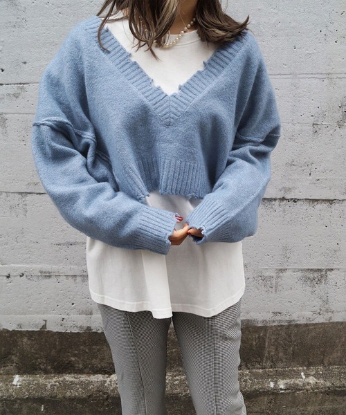 深めのVネック開きでオーバーサイズの抜け感のあるシルエット。カットオフ、ダメージ加工を施すことでトレンド感のある一枚に仕上げています。 オーバーサイズで中にシャツやブラウス、ロンTなどのインナーを着込めるので長いシーズン着用可能です! ダメージ加工とローゲージのざっくり感と相まってモードなイメージ。 ショート丈がウエスト位置を高く見せてくれるので、脚長効果も期待できます。 ざっくりとしたビックサイズなので、ルーズに着こなすのががオススメです! カットオフ、ダメージ加工を施すことでトレンド感のある一枚に仕上げています。 オーバーサイズで中にシャツやブラウス、ロンTなどのインナーを着込めるので長いシーズン着用可能です! ダメージ加工とローゲージのざっくり感と相まってモードなイメージ。 ショート丈がウエスト位置を高く見せてくれるので、脚長効果も期待できます。 ざっくりとしたビックサイズなので、ルーズに着こなすのががオススメです! ☆★お買い物をお楽しみいただく為に★☆ ★商品のお気に入り登録 完売カラーの再入荷通知や、ラスト1点の通知、 セールの通知も受け取ることができます。 ★ブランドのお気に入り登録 新商品や再入荷等、ブランドのお得な情報を いち早く受け取ることができます。
