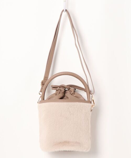 秋冬らしいフェイクファー素材を用いた、手持ちと肩掛けの2パターンの持ち方が可能なバッグ。 上部をひもでキュッと絞る巾着デザインも新鮮で、開口部が大きく開くので出し入れしやすいのも魅力です。 まちがしっかりあるので見た目より収納力もあり、鍵やリップクリームなどの小物を入れられる内ポケット付きです。