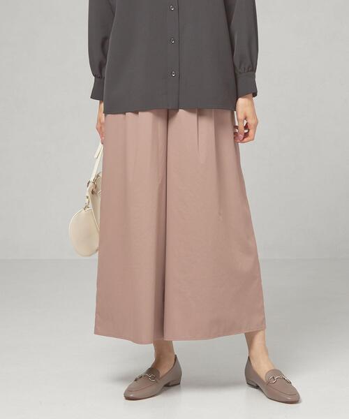さらりとした肌触りのワイドタックパンツ ■デザイン フロントは2タック、バックにはギャザーをたっぷりとり、ウエストゴム仕様ですっと脱ぎ着できるデザイン。 ボリュームのあるパンツシルエットを足首が覗く九分丈に仕上げたことで、すっきりとした印象でスタイリングできる一枚です。 ■素材 さらさらとした滑らかな肌触り。 光沢を抑えたマットな素材感で秋らしいこっくりとした濃いめのベージュがおすすめカラー。 ■コーディネート トップスはショート丈やタイト目なシルエットのものを選ぶとバランスがとりやすくおすすめです。 裾の近くまで裏地があり、カラータイツやマスキュリンなシューズと合わせると今年らしいスタイリングに。 ============================ 裏地:あり 透け感:なし 生地の伸び:なし 光沢感:なし ケア方法:手洗い可 ============================ <ma couleur(マ クルール)> 2020autumn/winterよりスタート。 情報過多な現代の女性達に向けた、日々を楽しむための強さと華やかさを兼ね備えたブランドです。 【注意事項】 ※商品を使用前に、タグ等に記載されている「取り扱い上の注意書き」、「洗濯表示」を必ずご確認ください。 ※商品画像は、光の当たり具合やパソコンなどの閲覧環境により、実際の色味と異なって見える場合がございます。予めご了承ください。 ※商品の色味の目安は、商品単体の画像をご参照ください。 店舗へお問い合わせの際は、 全国のTHE STATION STORE各店舗まで下記の品名/品番をお申し付け下さい。 品名:★mclr P タックGA スカンツ 品番:6914-599-0257