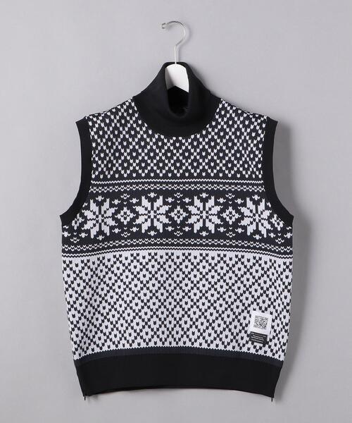 目の詰まったポリエステルニットを用いたタートルネックベスト。ノルディック柄のローゲージニットを、ポリエステルジャージーへのプリントで表現した1着。秋冬らしい柄使いながらも、モノトーンカラーでモード感を演出します。フロントの二次元バーコードタグが、ブランドの遊び心を感じさせるアクセント。サイドはジップで開閉することが可能です。 ============================ 裏地:なし 透け感:なし 光沢感:なし 機能性:なし ケア方法:ドライクリーニング ============================ <FUMITO GANRYU(フミト ガンリュウ)> デザイナーの丸龍文人氏は、文化ファッション大学院大学を卒業後、2004年にコム・デ・ギャルソンに入社。ジュンヤ ワタナベ・コム デ ギャルソンのパタンナーを経て、2008年同社内でGANRYUをスタート。同社退社後、2018年に<FUMITO GANRYU>を立ち上げ。 デビューシーズンでPITTI IMMAGINE UOMOの舞台に立ち、セカンドシーズンではパリ・メンズ・ファッション・ウィークの公式スケジュール入りを果たした注目ブランドです。 【注意事項】 ※商品を使用前に、タグ等に記載されている「取り扱い上の注意書き」、「洗濯表示」を必ずご確認ください。 ※商品画像は、光の当たり具合やパソコンなどの閲覧環境により、実際の色味と異なって見える場合がございます。予めご了承ください。 ※商品の色味の目安は、商品単体の画像をご参照ください。 ※こちらの商品は一部の店舗限定展開となっております。 品名:D FG 18 ENSEMBLE TTL VT 品番:11695996564