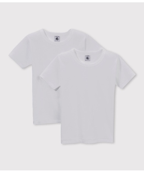 プチバトーの定番アイテム、シンプルでベーシックな白のTシャツ2枚組。環境にやさしいオーガニックコットンを使用したおすすめアイテムです。※本商品は、他のメンズアンダーウェアと比べ小さめのサイズ感となります。