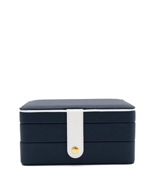【デザイン】 2段ジュエリーボックス 二段タイプのジュエリーボックス。 女性を輝かせる『アクセサリー』をきれいに収納。 豊富な収納スペースがある大容量で、色んなジュエリーに対応。 上段にはピアスやリングホルダーが豊富にあり、 フタの部分にはネックレスホルダーもあります。 仕切り収納は、間仕切りが取り外せるので 口紅や時計などの収納も可能。 水に強い合成皮革を使用しているので、 洗面台などの水場でも安心して使っていただけます。 【注意事項】 合成皮革特有のにおいがする場合がござます。 においが気になる場合は一度陰干しされてからご使用ください。 アクセサリー類を収納する際は、水分や液体等が付着した状態で収納しないでください。 ジュエリーによってはまれに変色する場合があります。その際は本品の使用をおやめください。 合成皮革部は劣化したりベタツキや貼りつきが生じることがあります。 火のそばでは使用しないでください。 ◆商品のお気に入り登録◆ 完売カラーの再入荷通知や、ラスト1点の通知、 セールの通知も受け取ることができますので、是非ご登録ください。 ◆ブランドのお気に入り登録◆ 新商品や再入荷などの情報を受け取ることができますので、是非ご登録ください。