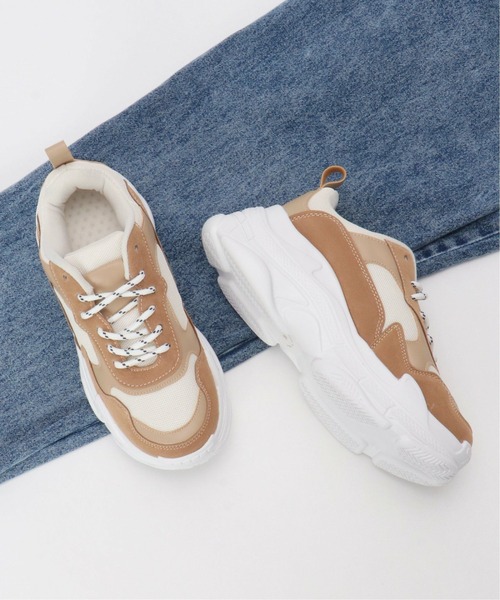 ボリューム感満載のソールがポイントのダッドスニーカー。■トレンドライクなダッドスニーカーボリューム感のあるソールが脚をほっそり美脚に見せてくれます♪足裏に負担を掛けない厚みのあるソールが嬉しいポイント◎■コーデに馴染むフォルムやデザインが魅力!ストリート、カジュアルに合わせるのはもちろん、ワンピースやスカートなど甘めなコーデの外しアイテムとしてもお使いいただけます。★Instagramにて近日発売予定のアイテムやルックをご紹介しております。@vence_sharestyle