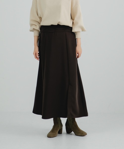 シーズンムードを高めるロングスカート【Design】裾にかけて緩やかに広がるシルエットが魅力のスカートは、シンプルデザインにさり気なく施されたウエストの仕様がアクセントになる一枚。コーディネートにも映える、絶妙な色合いがたまらないひと品は、抜群の発色がスタイリングを華やかに盛り上げるピース、着回しの効くチョコレートの2色展開。ストレスフリーな穿き心地を叶えてくれるウエストゴムで着心地も抜群。【Styling point】Tシャツのラフなスタイルから、ジャケットのかっちりスタイルまで幅広いコーディネートに活躍。トップスはインしてもよし、落ち感のある生地なのでオーバーサイズのニットの下に合わせたスタイリングもおすすめです。-LAATO-”わたしはわたし"をコンセプトとし、トレンドを意識するのではなく、自分の中で着たい服を確立している人をイメージ。大人の女性のなめらかさや艶やかさを表現するデザインや、柔らかいカラーが特徴的なブランド。シーズン:2021 A/Wmodel : 162cm 着用サイズ : FREE※商品の下げ札には、[DRON SKIRT]と表記されています。※商品画像は、光の当たり具合やパソコンなどの閲覧環境により、実際の色味と異なって見える場合がございます。予めご了承ください。※商品の色味の目安は、商品単体の画像をご参照ください。▼お気に入り登録のおすすめ▼お気に入り登録商品は、マイページにて現在の価格情報や在庫状況の確認が可能です。お買い物リストの管理に是非ご利用下さい。-----------------------------透け感:なし伸縮性:なし裏地:なし光沢:ややありポケット:なし-----------------------------