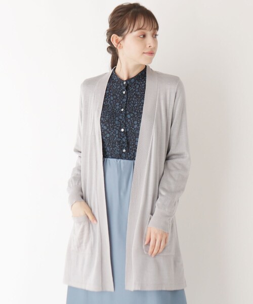 【デザイン】 シンプルなオープンフロントのカーディガンです。 バックネックのリボンディテールがかわいいポイント。 ヒップが隠れる着丈でパンツはもちろんスカートスタイルやワンピースともバランス良く羽織れます。 【生地感】 きれいに目が詰まったハイゲージニットです。 肉厚すぎない生地感ながらウールを混紡することであたたかみもカバーしました。 こちらの商品は主に冬に着用いただける商品です。 モデル情報:身長165cm B84 W61 H89 着用サイズ:38(M) 店舗へのお問い合わせ商品番号:N98-33009 ●製品寸法: 38(M):着丈80cm B51cm 袖丈56cm 肩幅36cm W52cm 40(L):着丈81cm B54cm 袖丈57cm 肩幅38cm W55cm 備考: