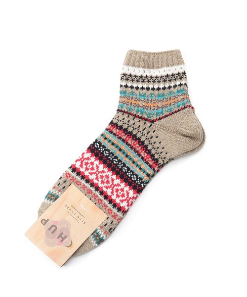 【デザインポイント】【CHUP】(チュプ)世界の先住民達が身にまとう為に創造されたデザインをリスペクトしつつSOCKSというフィールドにオリジナルデザインを表現したブランド。【デザイン】【素材】【技術】を常に強くこだわり、多くの時間と手間をかけて丁寧に創っています。【SULATA(スラータ)】伝統的なフェアアイルニットの柄で冬から春へ季節をうつり替わりをテーマにフェア島の冷たい春風の中で咲き始める草花の風景をイメージしています。【SULATA】はアイルランド語で【雪解け】を意味します。店舗へのお問い合わせ商品番号:205-02705●製品寸法:00:対応サイズ25~27.5cm 高さ12cm備考: