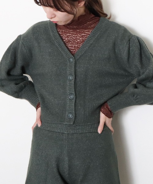 ■女子力満点のふんわりニット■ ふんわりとした編地が可愛いニット♪ 柔らかい色味は女の子らしさをぐっとアップしてくれます。 袖にはしっかりとボリュームを、しかし袖口はリブで細くなっているので スッキリと着ることが出来ます◎ またVネックになっているので顔回りもスッキリ。 大きめのボタンも特徴的で目を引くポイント! 短丈のカーディガンとしてや同素材のボトムがあるので セットアップで着こなすのもおススメです♪ ーーーーーーーーーーーーーーー 透け感:なし 裏地:なし 伸縮性:あり 光沢感:なし 生地厚さ:普通 洗濯方法:手洗い可 ※詳しいお手入れ方法は商品についているタグをご覧ください ーーーーーーーーーーーーーーー ※ご利用のモニター環境により、実際の色味と多少異なる場合がございます。 … information … 欲しいitemをお気に入り登録(♡マークをclick) ・お買いのがし対策…完売itemの再入荷やラスト1点の情報をお知らせ ・欲しいitemをお得にget…pricedownになったらいち早くお知らせ ・スムーズ検索…ZOZOのお気に入りアイテムページで簡単checkできるから、再検索不要♪