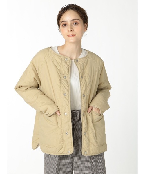 ■素材特徴 綺麗目なナイロン、モコモコとしたボア、軽くて暖かい中綿を使用しています。ナイロンは高密度で滑りがいいものを、ボアは柔らかく細かい毛羽のものを採用しています。 ■デザイン 一枚で二通りの着こなしが楽しめるリバーシブルブルゾンです。瓢箪(ひょうたん)のようなキルティングの中綿と、ボアで切り替えたデザインの両面で着用可能。ポケットも両面に配置して機能的にも優れています。 ■シルエット 身体のラインを拾わない、ややゆったりとしたシルエットで幅広い年代の方に着ていただけます。 ■コーディネート ワイドパンツやプリーツスカートと合わせて足元をスニーカーで仕上げれば、今年らしい「フェミニンカジュアル」が完成します。カジュアルから綺麗目まで着回し可能で、ヘビーローテーションになるアイテムです。 フィット感:ややゆったり シーズン:秋冬 展開カラー:ベージュ・カーキ *末永く御愛用頂くために、アテンションタグ・洗濯ネームを必ずご確認の上、御着用又はお取り扱い下さい。 *光の当たる場所や高温多湿になる場所での保管は避けて下さい。 *使用の有無に関わらず、経年劣化は進行いたしますのでご了承下さい。 *生地の裁断・縫製方法により、写真と同様の柄が出ない場合がございます。 *お使いのパソコンなど閲覧デバイス・環境により質感・色味に誤差が生じる場合がございます。 予めご了承くださいませ。 * ZOZOTOWN お買い物ガイド 商品のお気に入り登録 ♡をクリックしましょう!完売カラーの再入荷通知や、ラスト1点の通知、セールの通知をお知らせします。 ブランドのお気に入り登録 新商品や再入荷など、いち早くお得な情報を受け取ることができます。 最短で翌日お届け 商品をカートに入れた後、注文内容の確認ページで「即日配送」を選択していただければ、最短でご注文した翌日にお届け致します。 (ZOZOTOWNお買いものガイドをご参照ください)