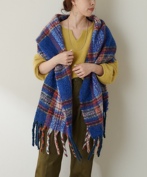 ♦リサイクル素材を使用したチェック柄の大判ストールふっくらとした柔らかい肌触りで暖かいストールです。冬のスタイリングのポイントにぴったりのチェック柄。大きめのサイズ感で、室内でのひざ掛けにもおすすめです。※こちらの商品は(SNZ5012216A0001 リサイクルラッセルボリュームフリンジストール)と同素材となります。※使い始めは濃色の衣類に繊維が付着する場合がございます。予めご了承ください。- - - - - - - - - - - - - - -生地の厚さ:厚い取り扱い:手洗い可- - - - - - - - - - - - - - -※撮影環境により、光の当たり具合で色味が違って見える場合があります。あらかじめご了承下さい。※画像はサンプルの為、実際にお届けする商品と仕様が異なる場合がございます。※リサイクルポリエステル使用。※水や汗等で濡れた状態でのご使用は摩擦により色落ちする場合があります。※この製品は素材の性質上、着用や洗濯時の摩擦によりピリング(毛玉)が発生する恐れがあります。ピリングが出来てしまったら引っ張ろうとせず、小さなハサミ等で丁寧に取り除いてください。※フリンジ部分は着用や洗濯等でほつれることがあります。※糸の特性上、表面の繊維が引っ掛かりやすくなっています。バッグの金属やアクセサリー等には十分ご注意ください。※摩擦等により、抜けた毛羽が他の衣類に付くことがあります。衣類などについた毛羽はブラッシングで取り除いてください。●お気に入り登録のおすすめ●≪気になるアイテムを登録≫ハートをクリックしてお気に入りに登録すると完売カラーの再入荷やラスト1点の通知、セールの通知を受けとることができます。≪ブランドを登録≫新商品や再入荷など、いち早くブランドの情報を受けとることができます。