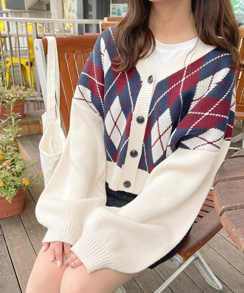 ◆アーガイル柄のカーディガンが登場です♪ 身ごろがアーガイル柄のカーディガン! 秋冬にぴったりな配色が可愛らしいです♡ Vネックデザインで、カジュアルな雰囲気に! ドロップショルダーで、華奢見え効果を狙えます。 袖は、たぽっとしたボリューム感のあるデザインに! シルエットが可愛らしいです♡ 長すぎず短すぎずの丈感で、インスタイルもアウトスタイルも楽しめます♪ 厚手なニット生地のため、温かさも◎ 秋冬に大活躍間違いなしのアイテムです。 ※XLサイズもございます。 ※ご覧のモニター環境や撮影環境により実際の商品と多少色味が異なって見える場合がございます。 ご理解の程よろしくお願いいたします。 【お買い物をよりお楽しみいただく為に♪】 ▼商品のお気に入り登録をおすすめします ♡をクリック! 完売カラーの再入荷や、ラスト1点の通知、 セールの際の通知を受ける事ができます。 ブランドのお気に入り登録も ご一緒にお願い致します。