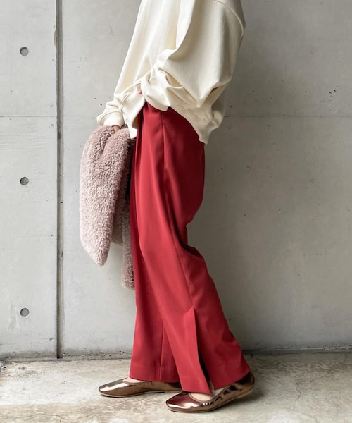 ■2021 AUTUMN & WINTER ITEM■頼れる万能パンツ!センタープレスを施した、きちんと感のあるシルエット。抜け感を与えるポイントとして、裾のサイドにスリットをプラスしました。ウエスト部分はボタンレスのフラットなデザインの為、トップスをインした際もすっきり見え抜群。また、バックはゴム仕様なのでイージーな履き心地で楽々ですよ!シンプルなデザインでトップスを選ばず合わせやすく、簡単にコーディネートを格上げしてくれる1本です!- POINT -・センタープレスの効いた美脚シルエット・きちんと感のあるシルエット・バックゴム仕様--------------------------------洗濯:手洗い可能透け感: なし裏地:なし伸縮性: ややあり光沢感: なし--------------------------------【 ♡ をクリックでお得な情報をお知らせいたします 】〈 商品のお気に入り登録 〉 お気に入りアイテムのお値下げ・再入荷・在庫ラスト1点など通知を受けることができます。〈 ブランドのお気に入り登録 〉DOUDOUの新商品や再入荷、セール、クーポン配布などお得な情報を受けることができます。--------------------------------------※ 掲載画像の商品の色味は、 撮影場所や光の当たり具合などにより色味が異なって見える場合がございます。 また、お客様のお使いのPC・スマートフォン等のモニター環境などにより色味が異なって見える場合がございます。予めご了承の上ご注文ください。 ※着用、お取り扱いの際は、商品についている品質表示とアテンションタグを必ずご確認下さい。