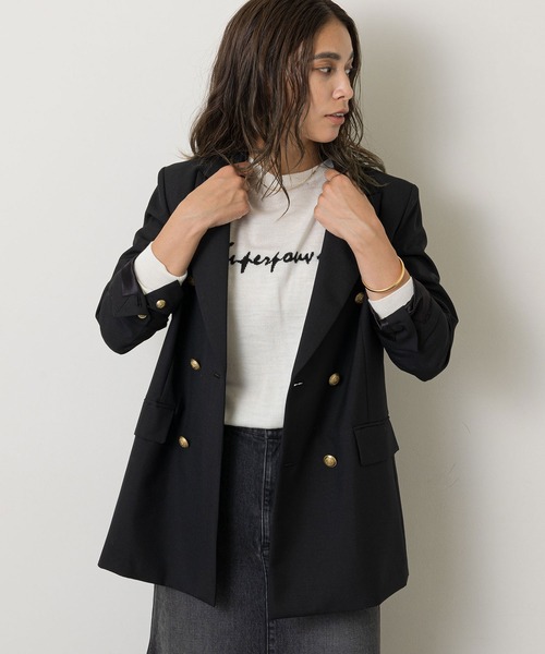 【2021AW】 Whim Gazetteの定番アイテム、クラシカルなブレザー 毎シーズン更新されるWhim Gazetteにとっては定番のブレザー。 細番手のウールにモヘアを入れ、独特なハリ感を持たせた生地を使用した上質感のある一着です。 襟の裏側は同色の別布を使用し、襟を立てた時にのぞく素材の違いがアクセントになり、落ち着いたカラーの金ボタンをセレクトするなど細部までこだわり抜いたデザイン。 薄く入った肩パッドやウエスト位置、今回の肩幅はいつもより少し広くさせマニッシュにブラッシュアップしました。 程よいゆとりと長めの着丈でスタイリングの幅を広げてくれるシルエットもポイントです。 格好良い女性らしさを演出してくれるジャケットは、オフィスシーンなどはもちろん、タウンスタイルにもおすすめのアイテムです。 ---------------------------------------------------- 洗濯方法:ドライクリーニング 透け感:なし 裏地:あり 伸縮性:なし 光沢感:なし ---------------------------------------------------- ※画像の商品はサンプルです。実際の商品と仕様、色味が若干異なる場合があります。 また 、パソコンやスマートフォンのモニター環境などにより、色味が違って見える場合がございます。予めご了承ください。 ※店頭及び屋外での撮影画像は、光の当たり具合で色味が違って見える場合があります。商品の色味は、スタジオ撮影の画像をご参照ください。 ※入荷状況によりお届け予定が前後する場合があります。予めご了承ください。 【 気になるアイテムは、「お気に入り」登録を】 ♡マークをクリックしておくことで、スムーズにお買い物が楽しめます。 ・ラスト一点のお知らせ ・再入荷のお知らせ ・SALEのご案内