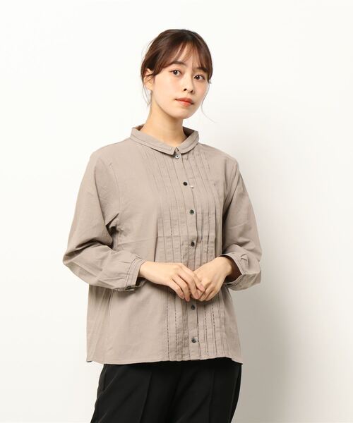 さり気ないピコ刺繍がおしゃれ度を高めてくれるブラウス。 フロントのタックデザインでニュアンスのある表情をさらにプラスします。 後ろにギャザーをほどこした、ふんわりとしたソフトなフォルムも◎ 様々なボトムスと合わせ、スタイリングの主役としてコーデしたい1枚です