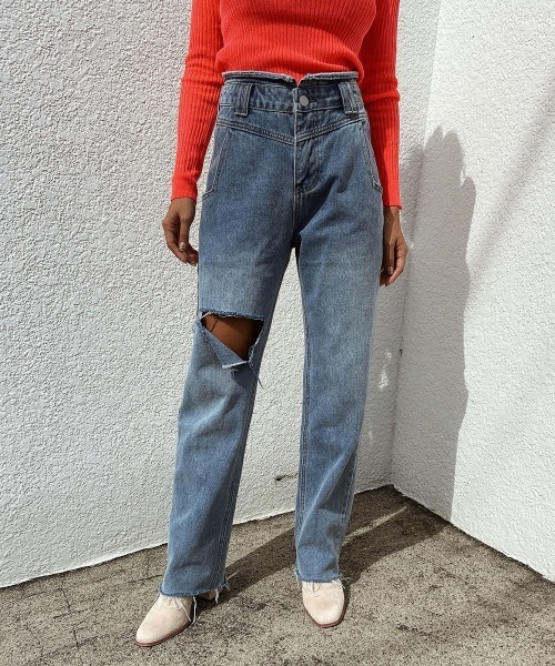 【point】ウエストのデザインが個性的で珍しいデニムのパンツです♪シルエットがキレイなのでスタイルアップ効果バツグンです!テーラードジャケットと合わせてカチッとしすぎないカジュアルなコーデに。ロンTと合わせてラフなコーディネートにもオススメです♪【ブランド紹介】esutoreja / エストレジャ「Cool」×「Sexy」 都会的なカッコいい大人の女性像を表現し、海外モデルのようなクール&セクシーを追求したファッションブランド。スタイルアップアイテムはもちろん、ブランド本来の着やすさや動きやすさも取り入れたアイテムも提案。≪お買い物をよりお楽しみいただくために♪≫・商品のお気に入り登録完売カラーの再入荷通知や、完売間近の通知、セールの通知を受けることができます。・ブランドのお気に入り登録新商品や再入荷など、いち早くブランドのお得な情報を受け取ることができます。カラーバリエーション/レイヤード/スタイルアップ/クール&セクシー/体系カバー/リラクシー/トレンド/旬/海外風/海外ファッション