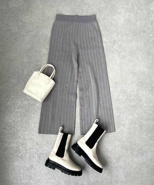 思わず目を惹くストライプJQ編みニットパンツが仲間入り●detailコーデに一枚取り入れるだけで存在感を漂わせるニットパンツ。オールウエストゴム使用で着心地抜群。今季トレンドのレイヤードスタイルに重宝すること間違いナシ。触り心地のよい柔らかなニットでストレスなく着用して頂けます。●fabric気張らずに着用できる素材感。柔らかくふわりとした仕上がりです。●coordinate同柄のニットベスト(55424400)とセットアップで着用するのがオススメ。オーバーサイズのトップスを合わせてラフなスタイリング。ニットワンピースやシャツワンピースに合わせてレイヤードスタイルを◎