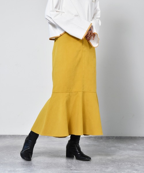 起毛素材で暖かく着られるマーメイドスカート すっきりとしたシルエットで大人っぽいくも可愛らしい印象できられるマーメイドスカート。 裾はフレアになっているので女性らしく、脚捌きも問題なし! お手持ちのトップスとコーディネートするだけで女性らしい上品なスタイリングが完成しますが、 着心地にこだわり起毛素材を採用して、見た目上品なのに、着心地は暖かい! ニットやソンプルなロンTと合わせるなど、異素材MIXスタイルをお楽しみいただきたいアイテムです。 シンプルですがデザインが目をひく存在感のある着回し力の高いスカートはおすすめの1枚 ※撮影環境やご覧のモニター環境によって実際の商品とお色味が多少異なってみえる場合がございます。ご理解の程何卒よろしくお願い致します。