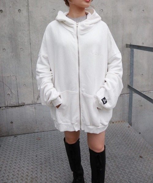 胸と背面にロゴ刺繍をあしらったスタイリッシュなフーディ。 BIGシルエットでゆとりがあり、気になるボディラインもカバー。気負いなくスタイリング出来るのも魅力です。 フロントZIP仕様で脱ぎ着も楽にすることができ、デイリーの愛用率も高まりそう