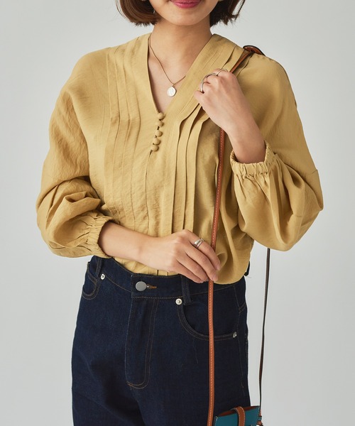 さらっとした着心地で春夏も快適に♪Vネックとセンタータックが可愛い大人ブラウス。 ■design ・Vネックとタックが甘すぎない大人可愛いデザイン。 ・肩からセンターにかけて大きく入ったタックが特徴。 ・くるみボタンと袖ギャザーが可愛らしいデザイン。 ■size■ ・身幅:49 ・総丈:65 ・ゆき:64 ■Coordinate ・オフィスシーンや綺麗めコーデに活躍。セットアップに合わせるのもおすすめです。 ・デニムと合わせたり、カラーパンツと合わせカジュアルダウンにも。 ・キャミワンピースのインナーに合わせたり、パデットサンダルと合わせ夏のスタイルにもおすすめです。 ・春先にはトレンドのマーメイドスカートやプリーツボトムと合わせてトレンドコーデもオススメです! ・サラッとした着やすい素材なので汗ばむ夏にぴったりな夏服です◎ ・キレイ目なTシャツなので、日傘をさしても統一感のあるコーデに! ・グルカサンダルやスマホショルダーと合わせれば、トレンドの夏ファッションに! 【SETUP7 / セットアップセブン】 ラグジュエリー、ファッション、スポーツ、レジャー、ワーク、デイリー、アンダーウェア の7つのカテゴリーをミックスさせ、それぞれのライフスタイルに合わせた商品をご提案します。 ☆《お気に入り登録》でお得な情報がいっぱい☆ ・「商品のお気に入り登録」で再入荷通知や、ラストの通知、セール通知も受け取ることができます。 ・「ブランドのお気に入り登録」で新商品や再入荷など、お得な情報を受け取ることができます! ※ご注文いただいた予約商品のお届け時期の確認は、注文履歴ページより行えます。