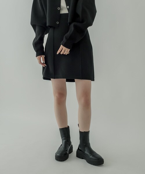 美脚見え叶う着回し抜群のトレンドボトム!商品ポイント・今季トレンドのミニ丈のスカートはマストバイなアイテム!・太もも周りはしっかりくくれる丈感なので安心して着用できます◎・タックがより縦のラインを綺麗に見せてくれます。・すっきりとしたウエスト部分はインでもアウトでも綺麗なシルエットに!スタイリングポイント・ボリューム感のあるニットやスエットをざっくりあわせて今季らしいスタイリングに!・足元はサイドゴアブーツやロングブーツでスタイルアップに◎着用コメント身長:158cm 骨格:ストレートサイズ1着用。太もも部分もすっきり隠れ安心感のある丈感です!ハイウエスト仕様なので朝比奈が効果も抜群でした!ショート丈やトップスインしてよりスタイルアップに◎身長:163cm 骨格:ウェーブサイズ2がバランスよく着用できました。ウエストも後ろがゴムなので履き心地も抜群です!腰回りが気になるのでボリューム感のあるニットで合わせたスタイリングは得にオススメです!足元はサイドゴアブーツでトレンド感もアップ◎身長:153cm 骨格ナチュラルサイズ1で丁度良い丈感で着用できました!シンプルなデザインなので幅広いアイテムと合います。ボーダートップスを合わせてカジュアルなスタイリングは相性抜群◎チェックジャケットなど綺麗めなアイテムにも決まりやすいです!骨格タイプストレート:全体的に立体型で筋肉質。ひざ下はすらっと細め。ボディラインにメリハリがある。ウェーブ:上半身が薄く、華奢。緩やかな曲線のボディライン。下半身に重心があり女性らしい体型。ナチュラル:筋肉や脂肪があまり感じられない体型。腰の位置が高く骨や関節が目立ちやすい。※洗濯、取り扱い洗濯:40度限度 手洗いアイロン:低温110℃まで スチームなし(あて布使用)タンブル乾燥:不可------------------------------------------------------裏地:あり伸縮性:あり光沢感:なし生地の厚さ:普通------------------------------------------------------------------------------------------------------------商品のお気に入り登録➡ お気に入りアイテムの値下げ・再入荷・在庫1点などの通知を受け取ることができます。ブランドのお気に入り登録➡ 新商品や再入荷、セール、クーポン配布などお得な情報を受け取ることができます。※サイト上のカラー名と、お届け商品に記載されているカラー名が異なる場合がございます。※商品の色味は、撮影場所や光のあたり具合などにより色味が違って見える場合が御座います 。また、お客様のお使いのPCのモニター環境などにより色味が違って見える場合が御座います。予めご了承の上ご注文下さい。※ご注文いただいた予約商品のお届け時期の確認は、注文履歴ページより行えます。------------------------------------------------------'0924